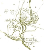 kartan puhtaaksipiirretystä versiosta mustavalkoisena valokopiona.